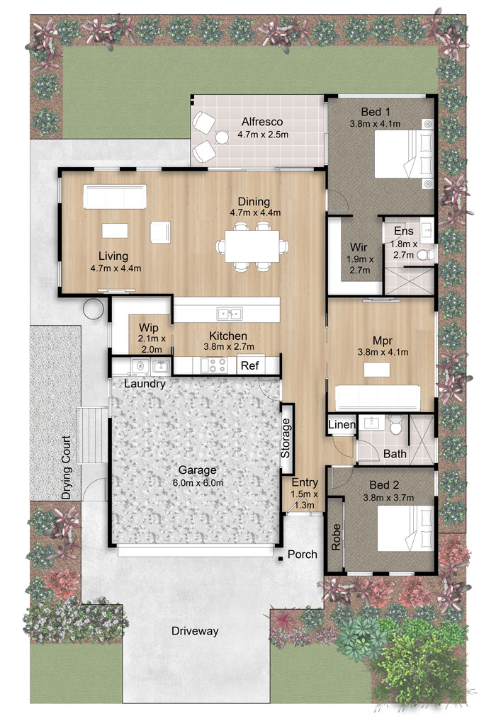 By seamlessly blending modern comforts with sleek design elements, the Carnelian home offers cohesive living spaces which include a serene master suite, a versatile multi-purpose room for new hobbies, and a relaxing large alfresco area. This ensures an environment that is both harmonious and enriching, prioritizing not only functionality but also a sophisticated and balanced living experience.