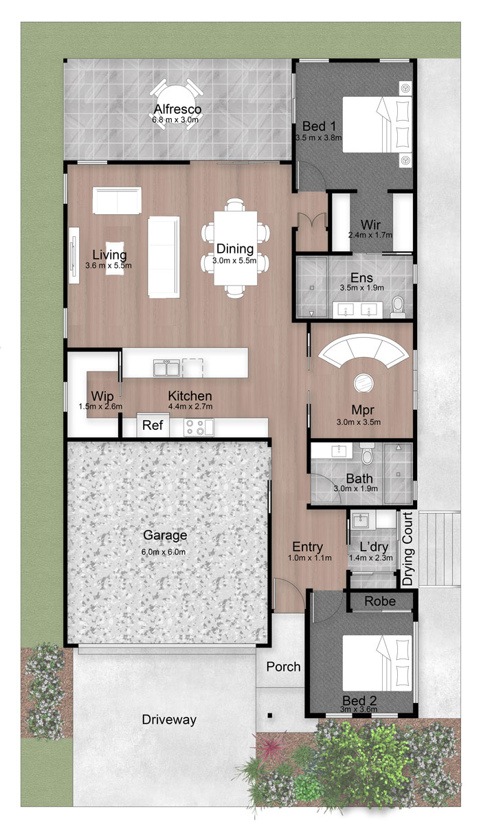 Artist Impression. Not to scale and subject to change and approvals. This manufactured home is regulated under the Manufactured Homes (Residential Parks) Act 2003. Refer to the comparison document here.