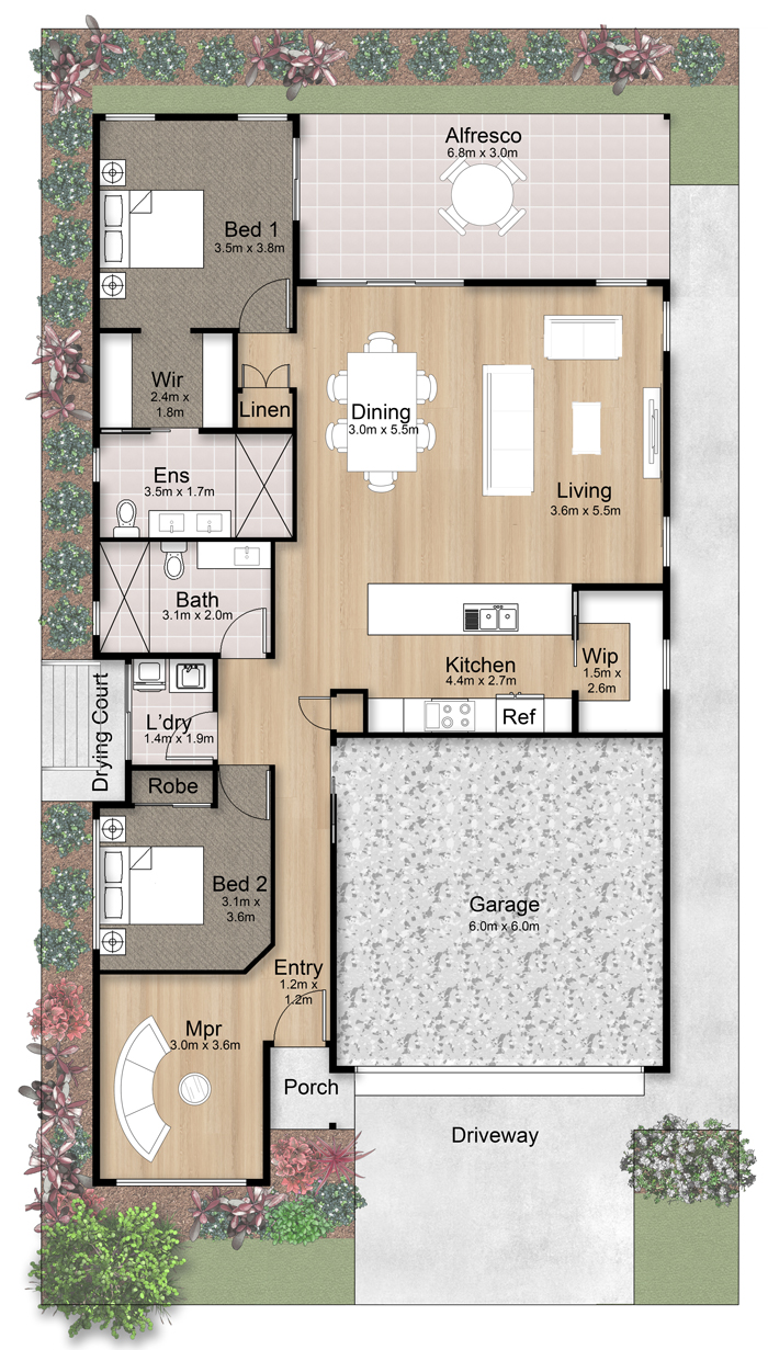Artist Impression. Not to scale and subject to change and approvals. This manufactured home is regulated under the Manufactured Homes (Residential Parks) Act 2003. Refer to the comparison document here.
